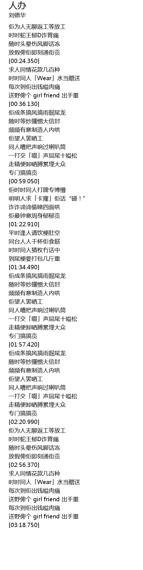 | [02:45.310] | 佢为人无聊返工等放工 |