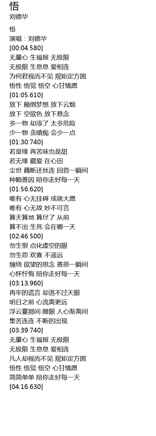 | [03:58.600] | 悟性 悟觉 悟空 心甘情愿 |