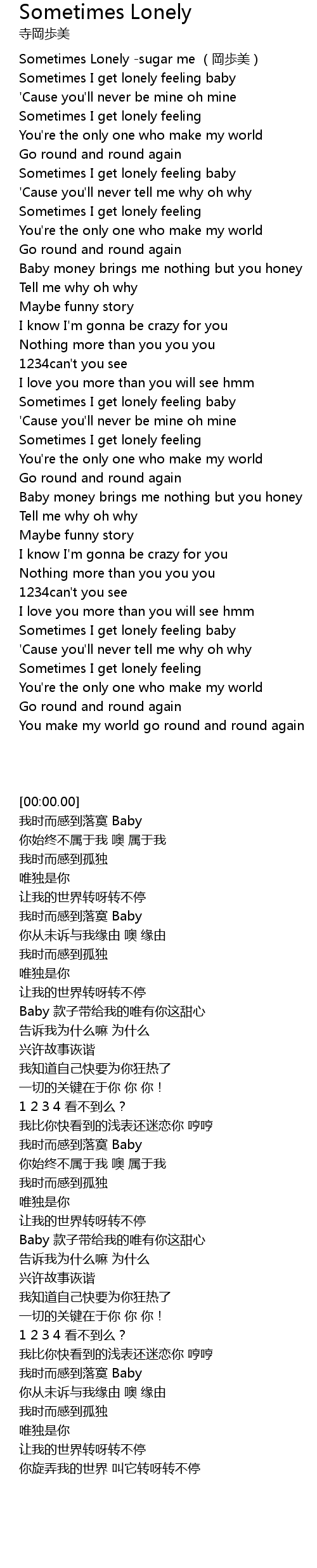 | [00:00.00] | Sometimes Lonely sugar me gang bu mei |