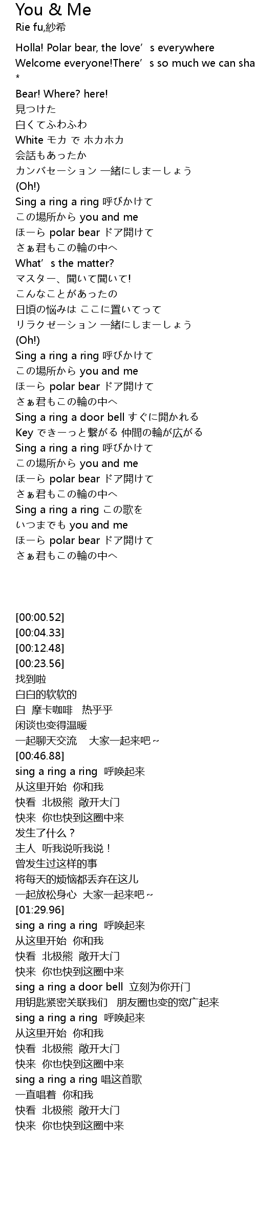 | [00:00.52] | Holla! Polar bear, the love’s everywhere |