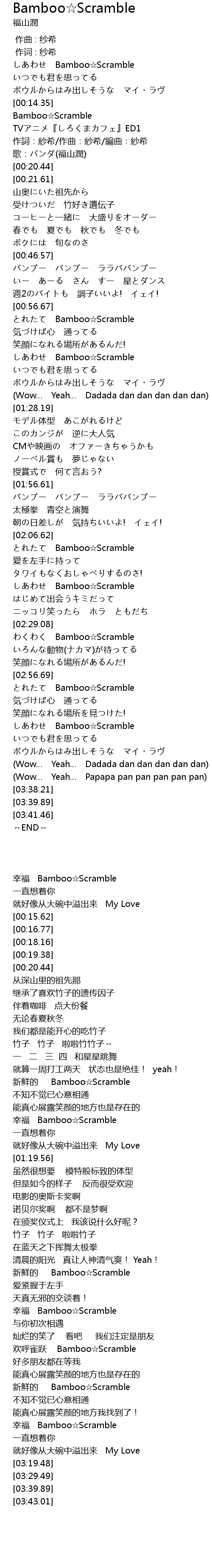 | [01:07.65] | しあわせ Bamboo☆Scramble |