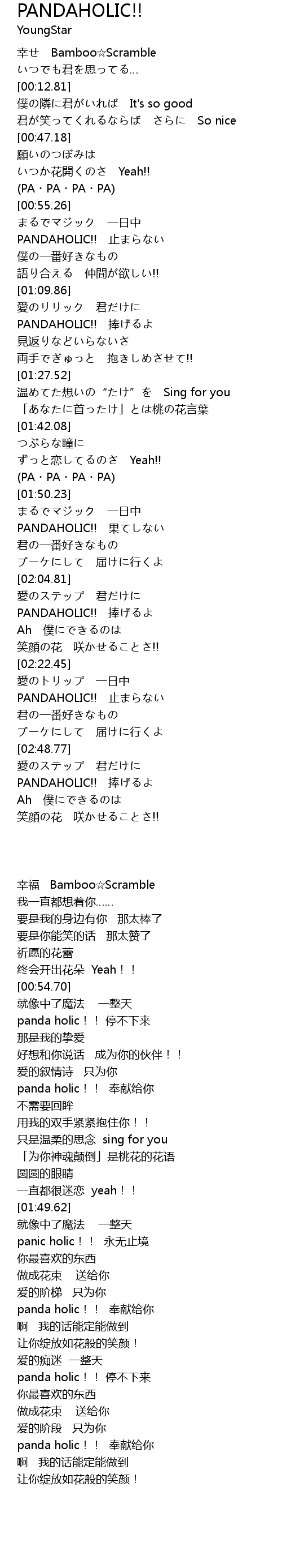 | [02:38.65] | PANDAHOLIC!! 止まらない |