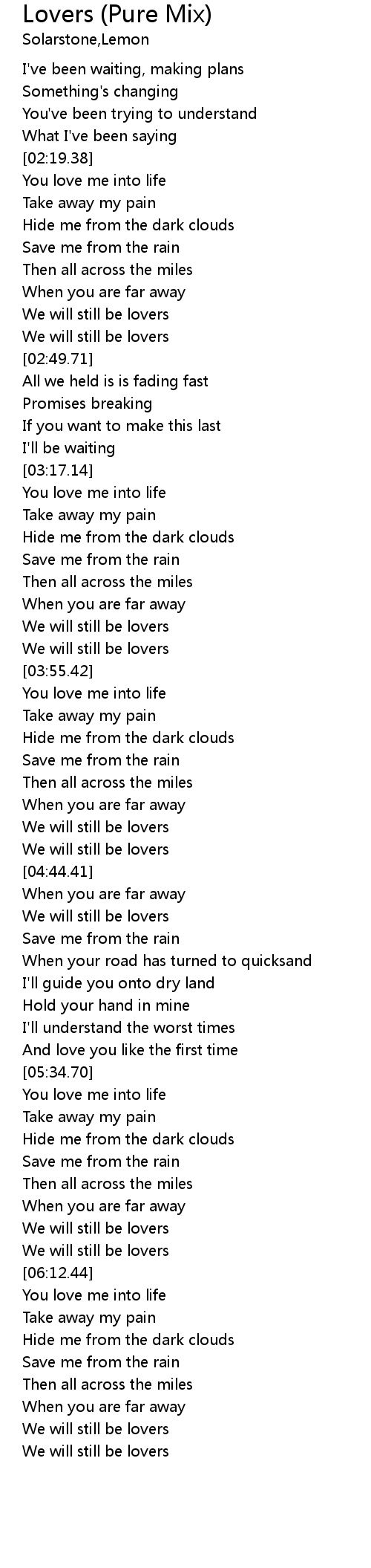 | [04:33.51] | We will still be lovers |