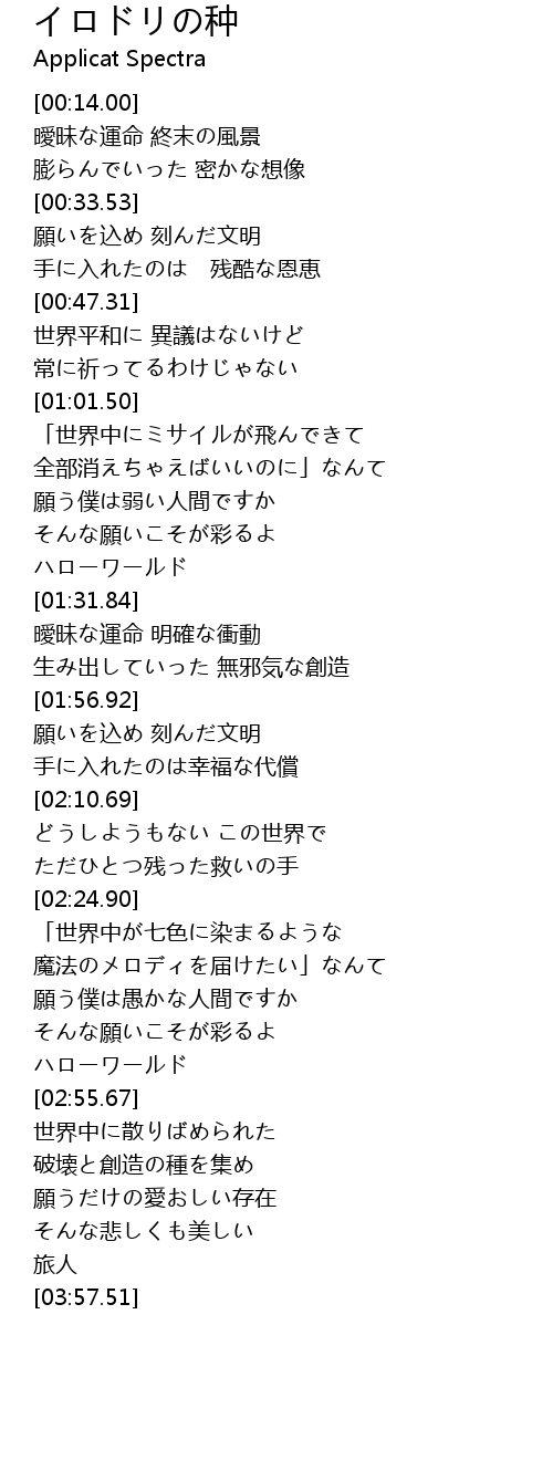 | [03:32.59] | 破壊と創造の種を集め |