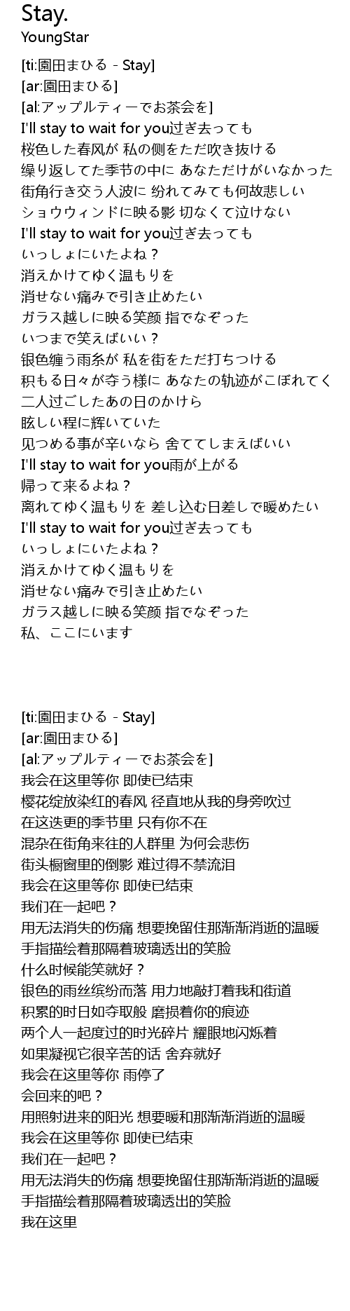 | [00:00.000] | I'll stay to wait for you过ぎ去っても |