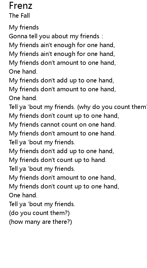 | Tell ya 'bout my friends. (why do you count them?) | |