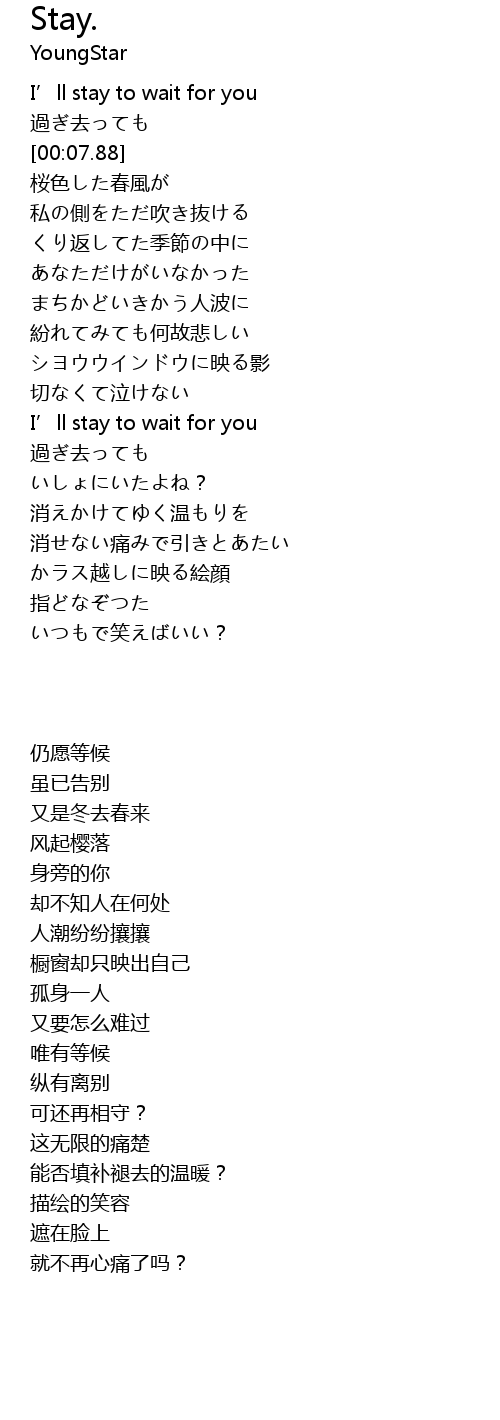 | [00:00.91] | I' ll stay to wait for you |
