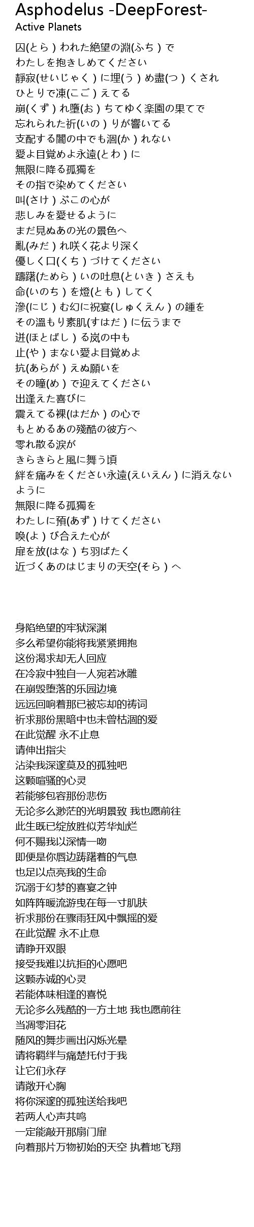 Asphodelus -DeepForest- 歌词
