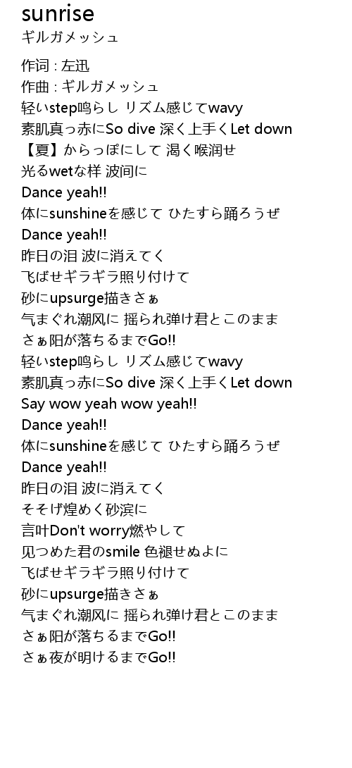| 体にsunshineを感じて ひたすら踊ろうぜ | |