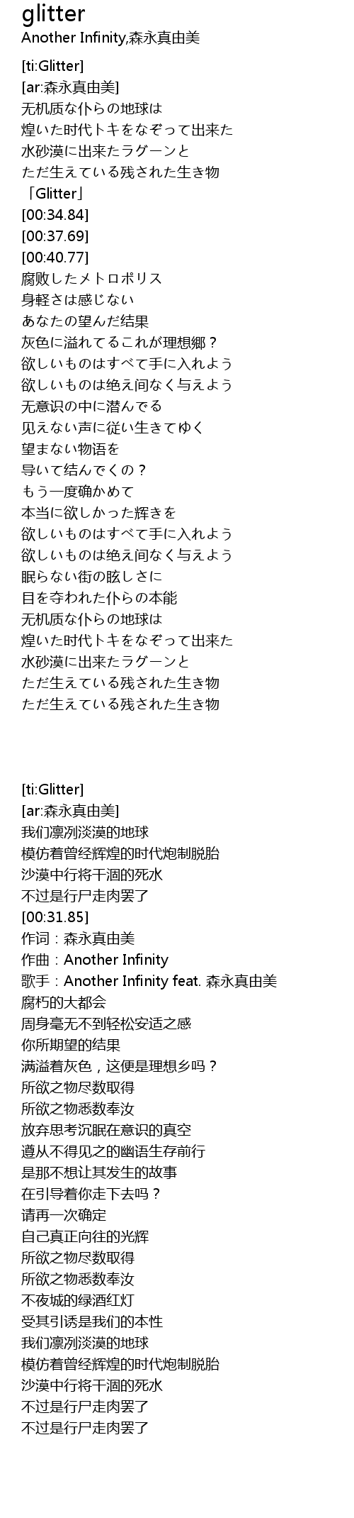 | [00:40.77] | 歌手:Another Infinity feat. 森永真由美 |