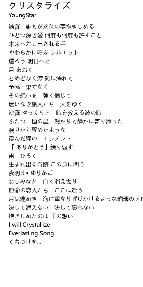 | [00:16.80] | 綺羅 誰もが永久の夢抱きしめる |