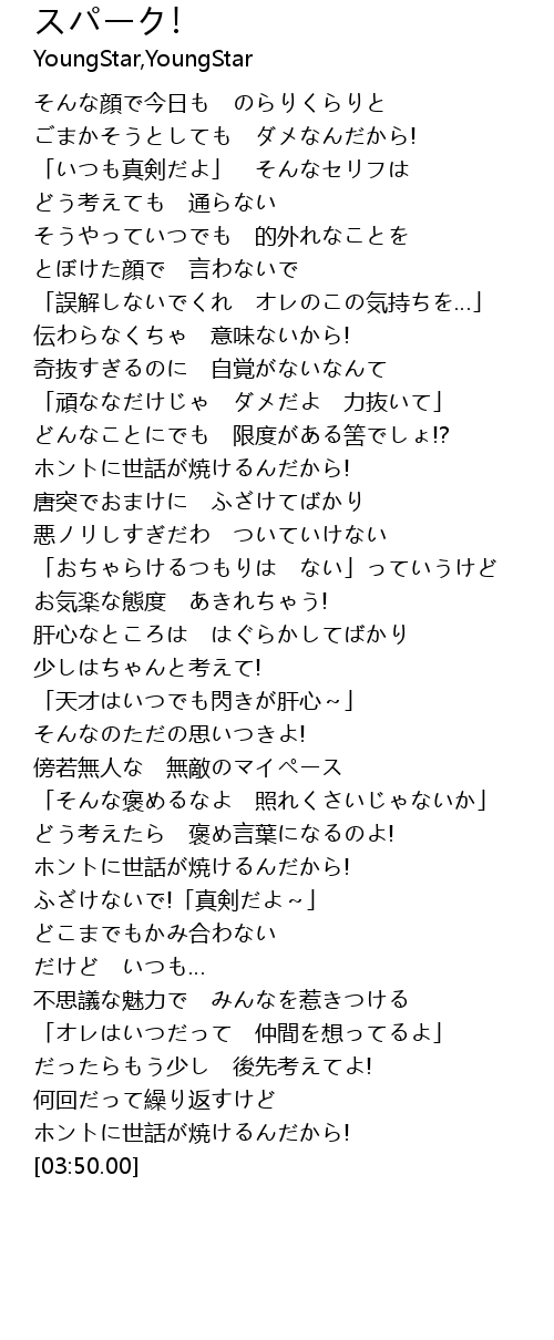 | [03:22.14] | 「オレはいつだって 仲間を想ってるよ」 |