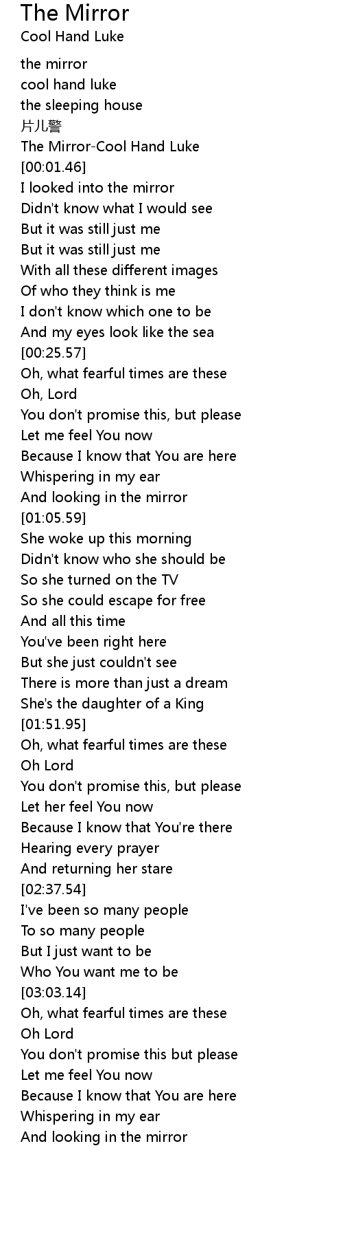 | [00:00.46] | The Mirror-Cool Hand Luke |
