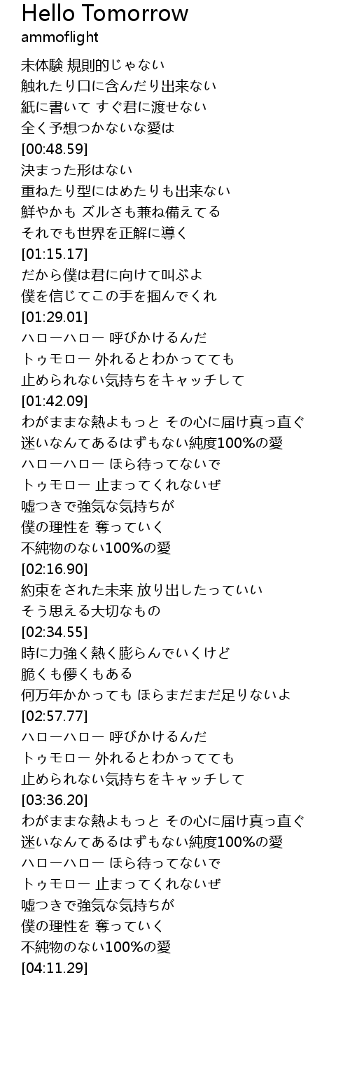 トゥモロー 止まってくれないぜ |