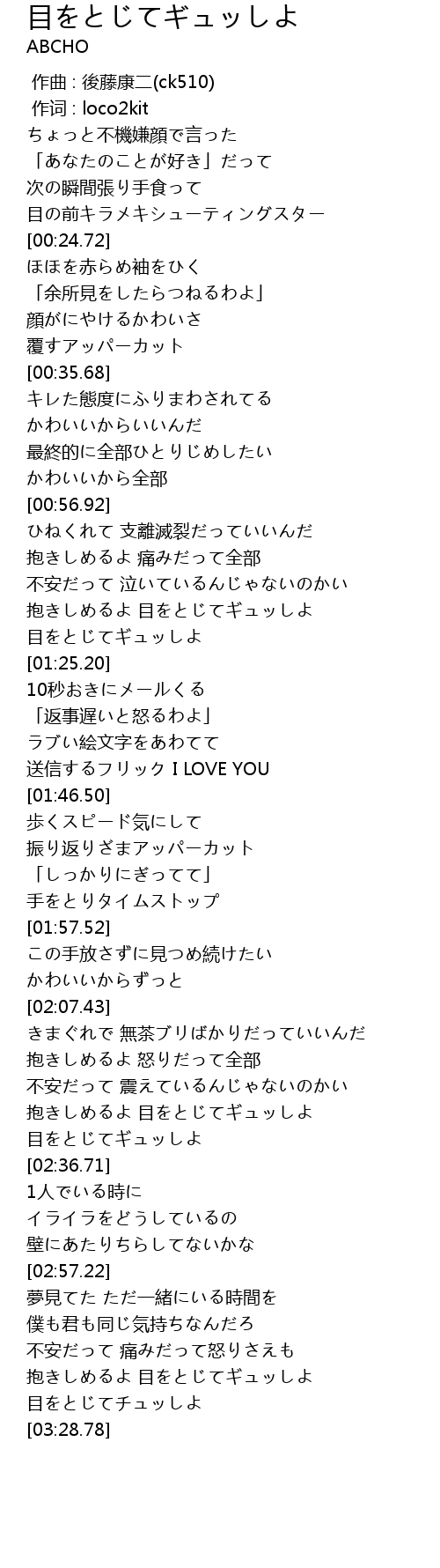 | [03:23.53] | 目をとじてチュッしよ |