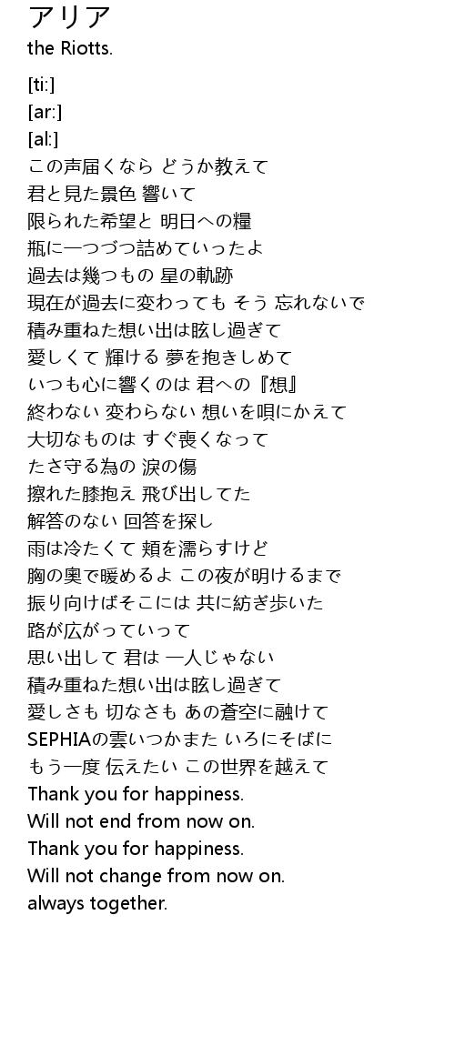 | [01:18.07] | 終わない 変わらない 想いを唄にかえて |