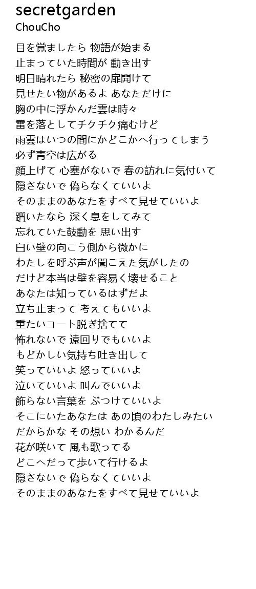 | 顔上げて 心塞がないで 春の訪れに気付いて | |