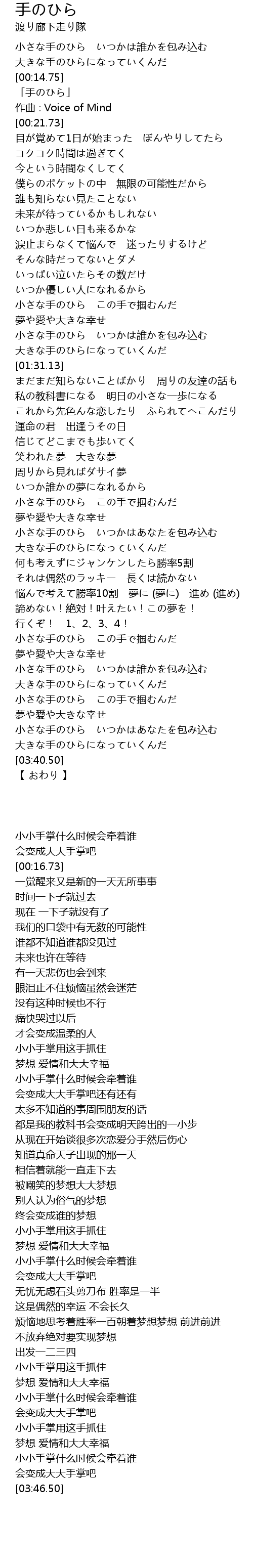 | [00:00.00] | 小さな手のひら いつかは誰かを包み込む |