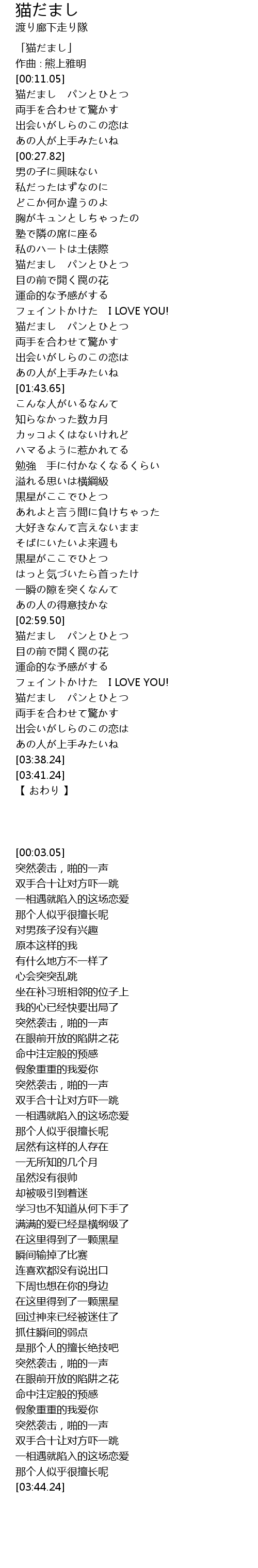 | [03:20.71] | フェイントかけた I LOVE YOU! |