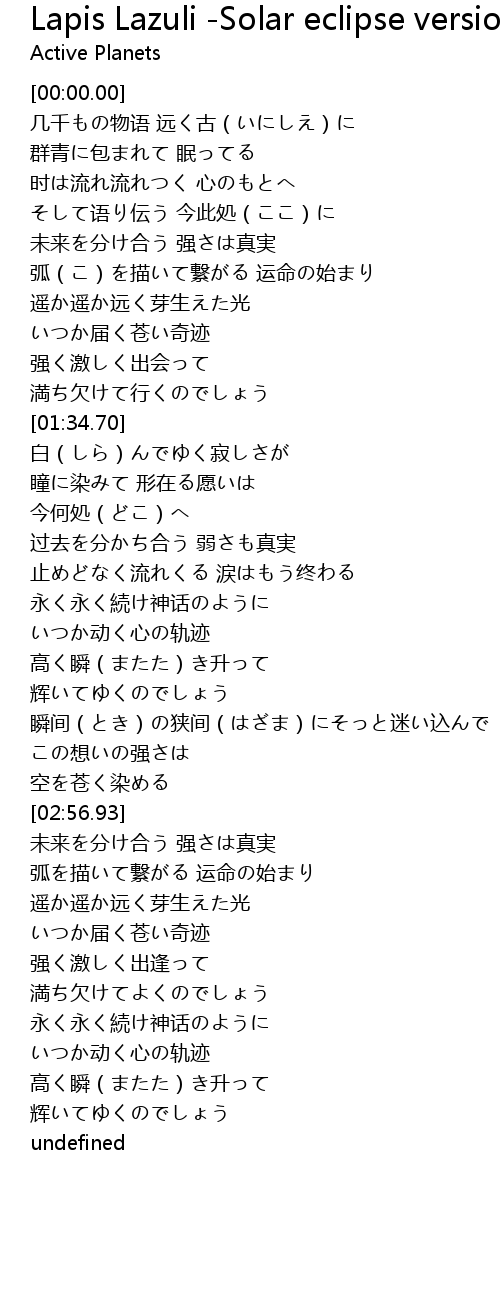 | 歌曲 | Lapis Lazuli -Solar eclipse version- |