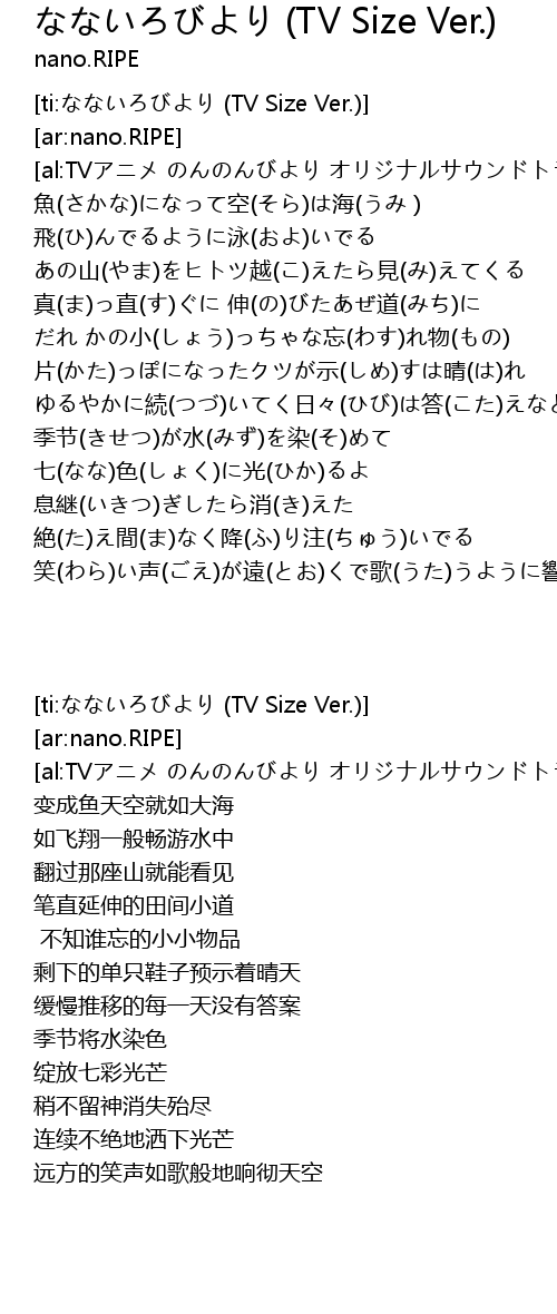 | [ti:なないろびより (TV Size Ver.)] | |