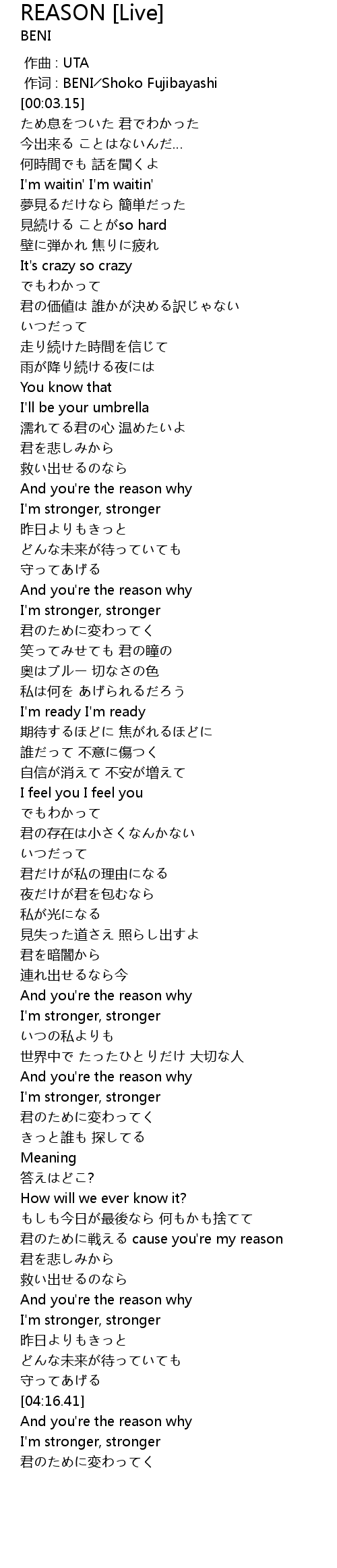 | [03:46.83] | jūn zhàn cause you' re my reason |