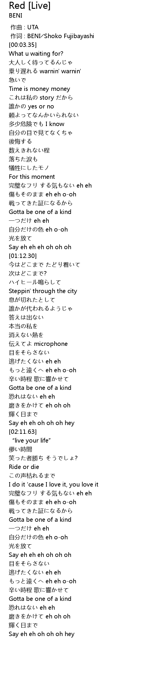 | [00:01.00] | 作词 : BENI╱Shoko Fujibayashi |