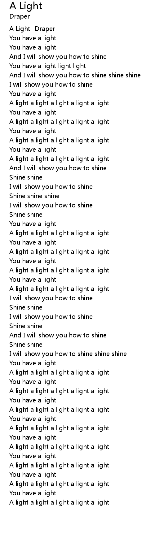 | [01:18.384] | A light a light a light a light a light |