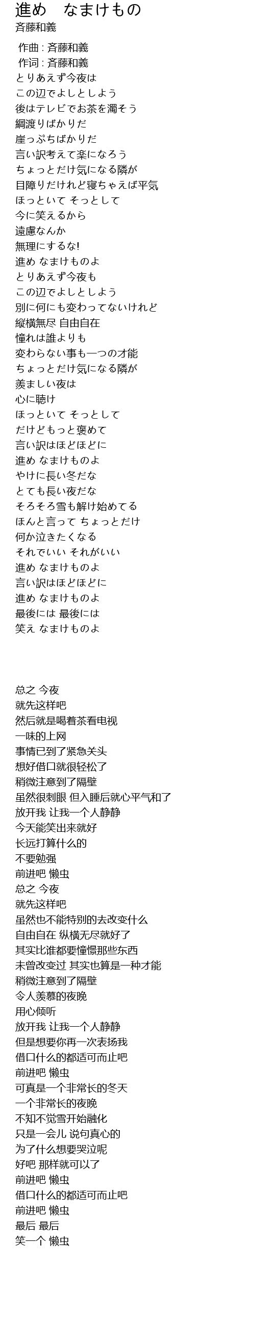 | 歌曲 | 進め なまけもの |