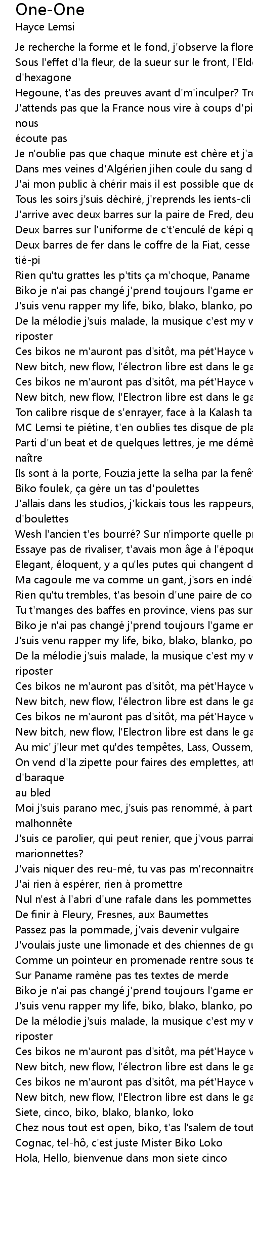 | J' suis venu rapper my life, biko, blako, blanko, posté s | |