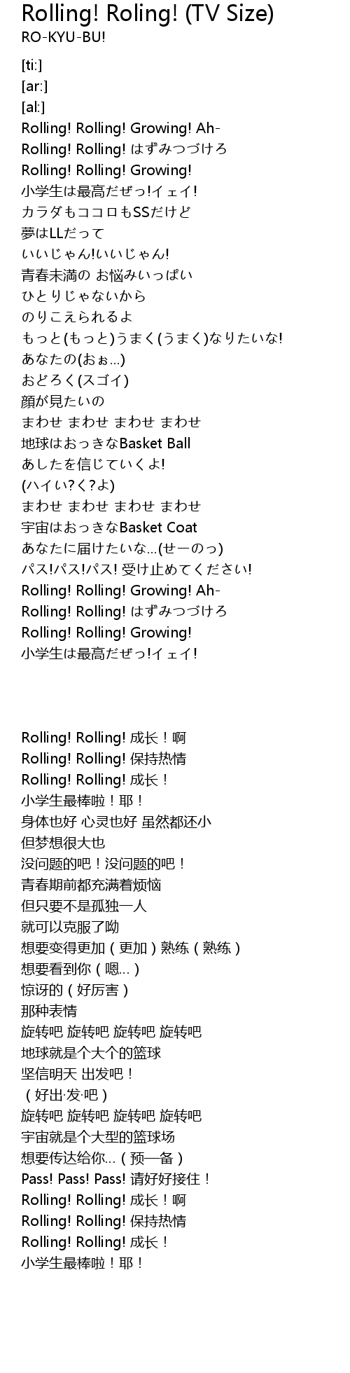 | [01:18.35] | Rolling! Rolling! 成长!啊 |