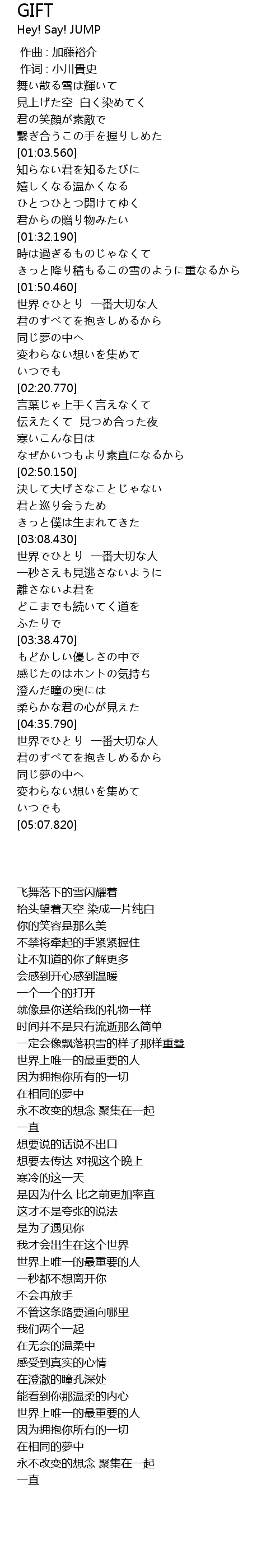 | [01:58.740] | 君のすべてを抱きしめるから |