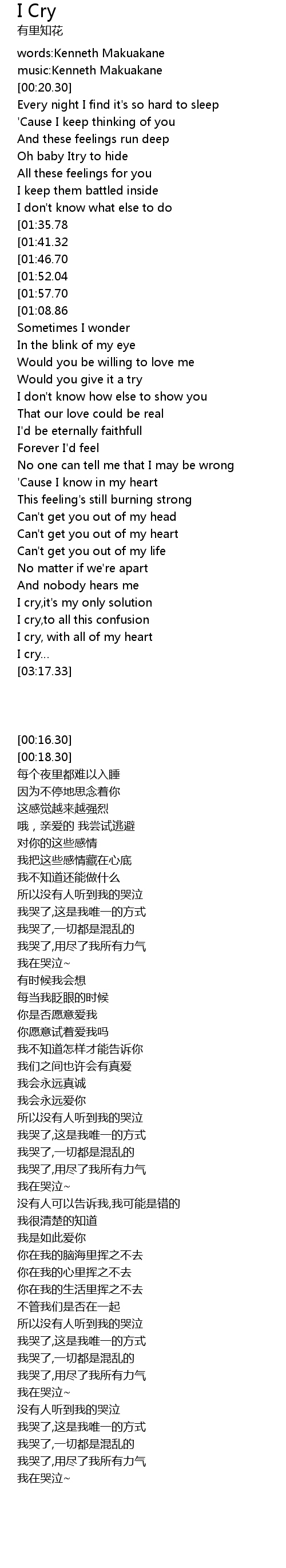 | [03:12.43] | I cry |