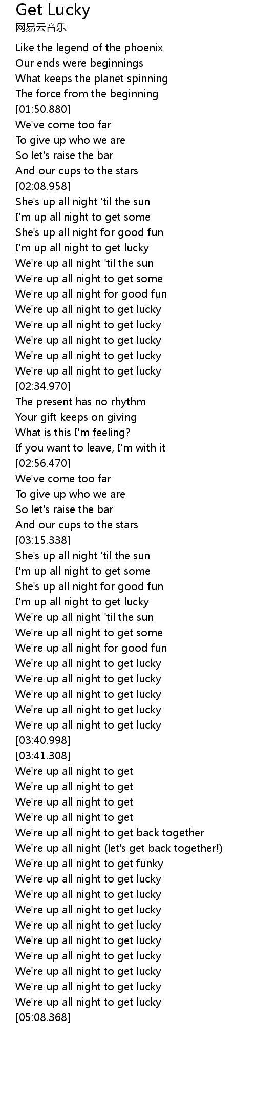 I'm up all night to get lucky |