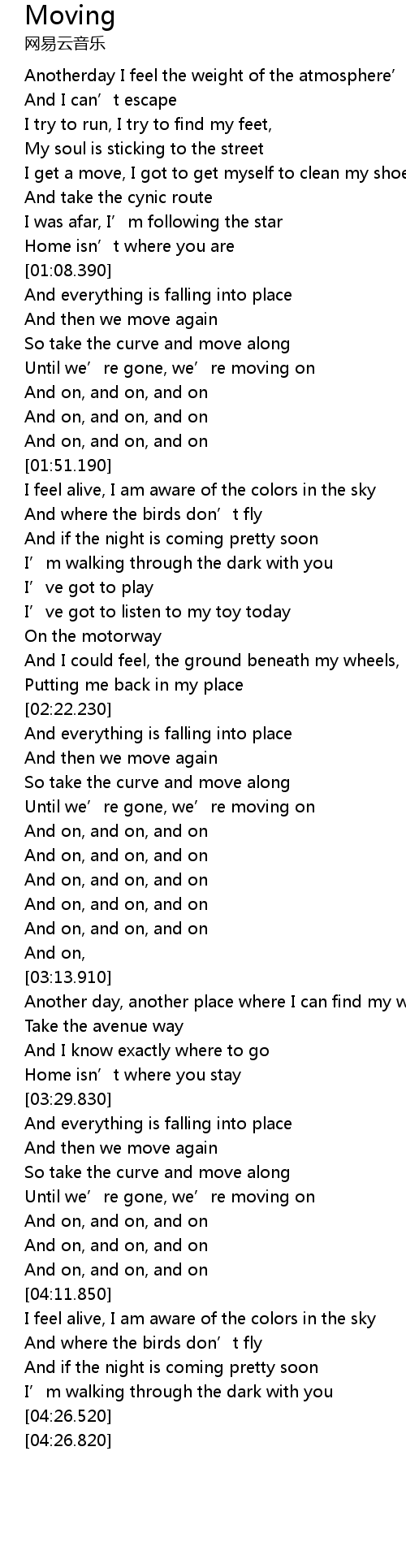 | [03:54.580] | Until we’re gone, we’re moving on |