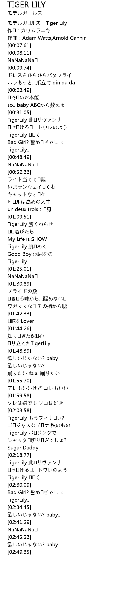 | [00:00.61] | モデルガ�ルズ - Tiger Lily |