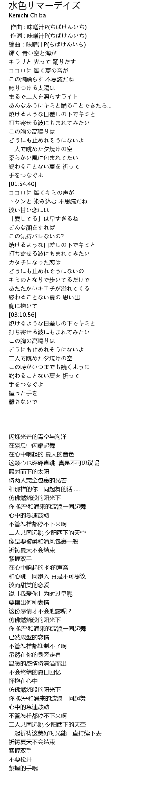 作词 : 味噌汁P(ちばけんいち) |
