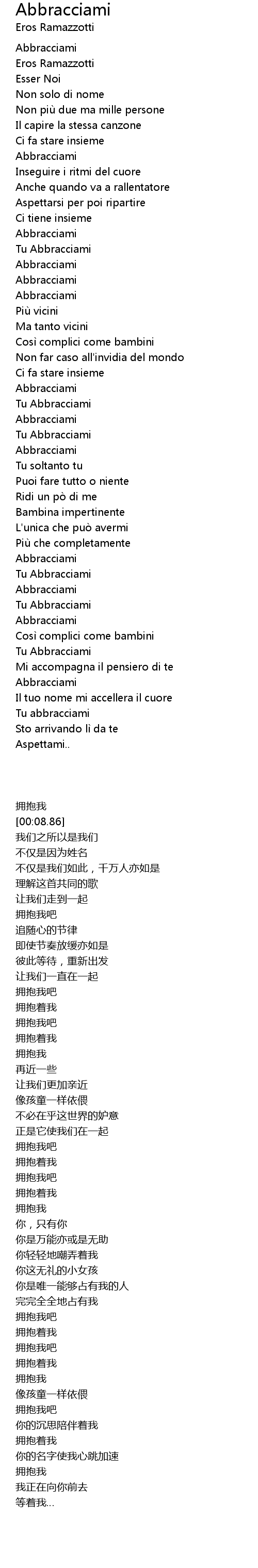 | [02:44.86] | Abbracciami |