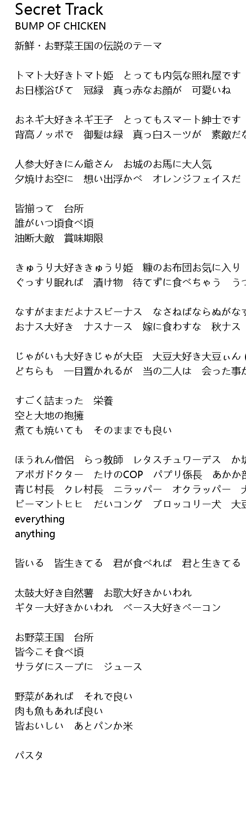 | [02:05.70] | 皆いる 皆生きてる 君が食べれば 君と生きてる |