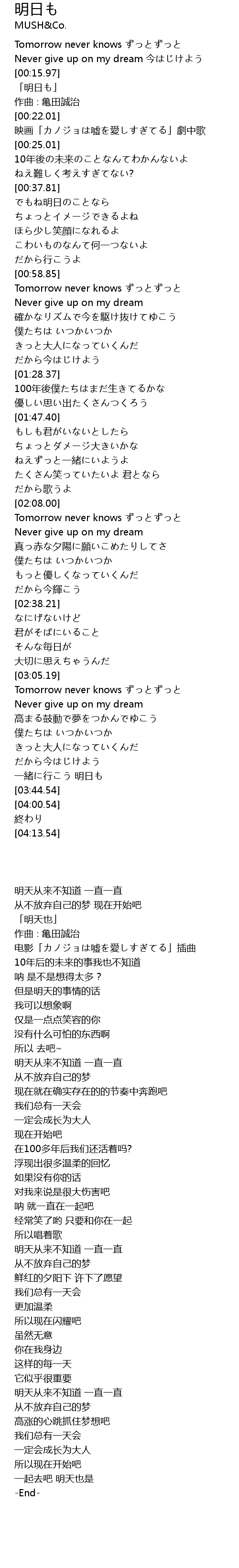 | [00:58.85] | Tomorrow never knows ずっとずっと |