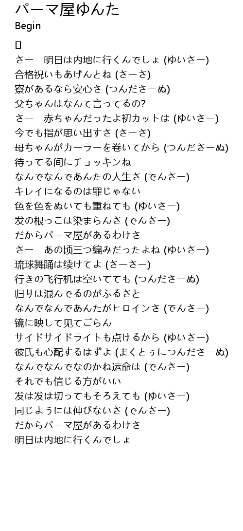 歌曲 パーマ屋ゆんた