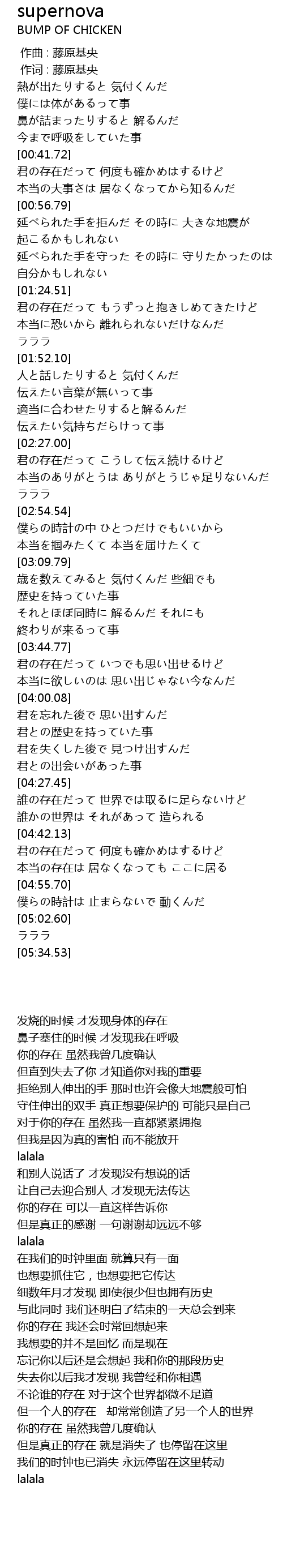 | [04:16.42] | 君を失くした後で 見つけ出すんだ 君との出会いがあった事 |