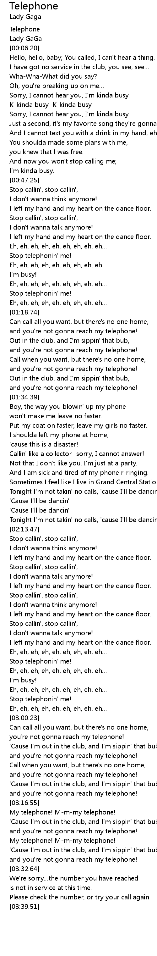 | [03:31.05] | and you' re not gonna reach my telephone! |