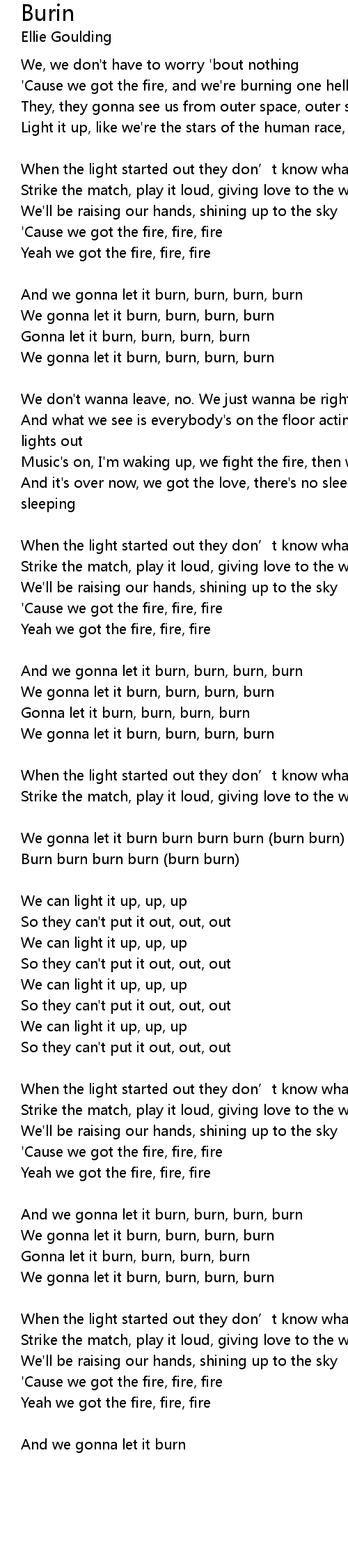 | We gonna let it burn burn burn burn burn burn | |