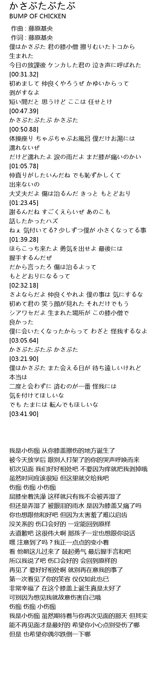 | [03:05.74] | かさぶたぶたぶ かさぶた |