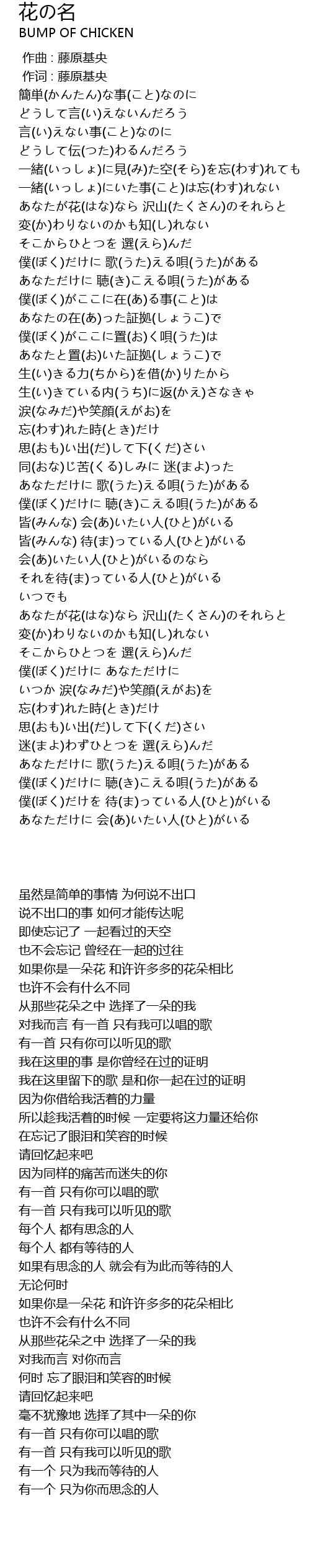 | [00:00.00] | 作曲 : 藤原基央 |