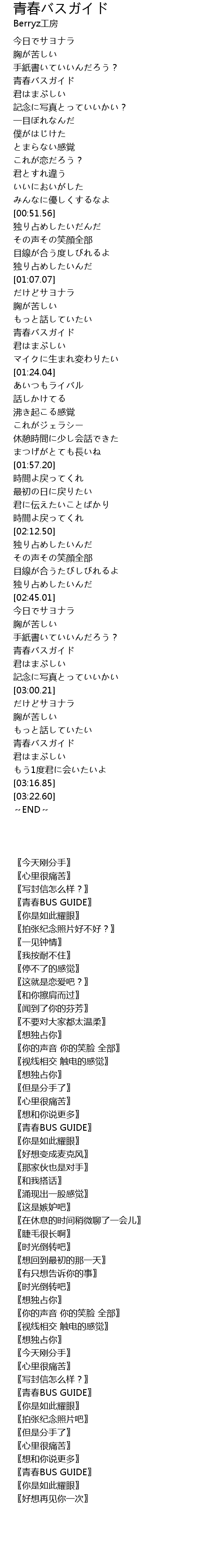| [02:53.72] | 〖青春BUS GUIDE〗 |