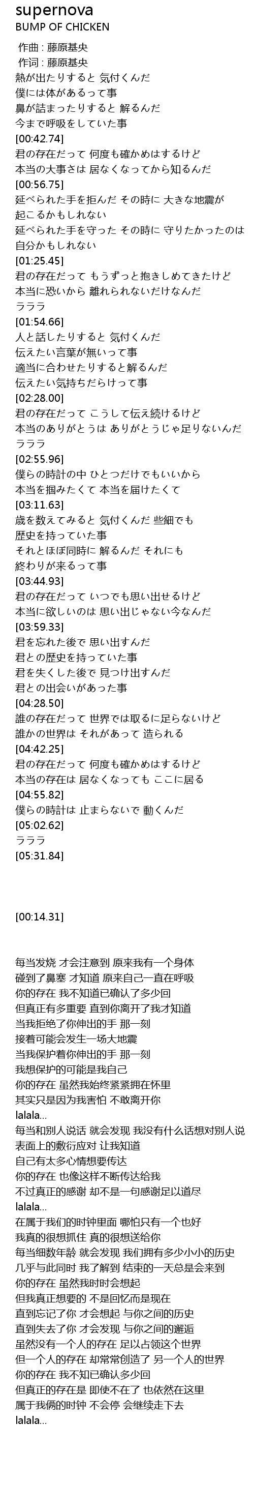 | [00:01.00] | 作词 : 藤原基央 |