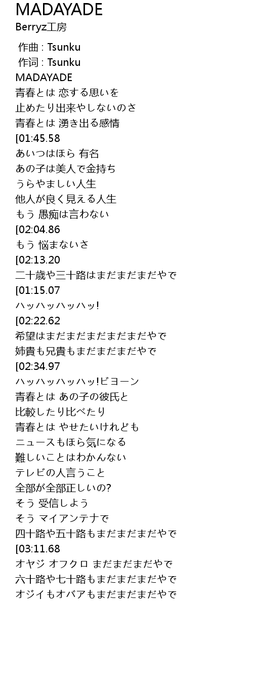 | [00:00.333] | 作词 : Tsunku |