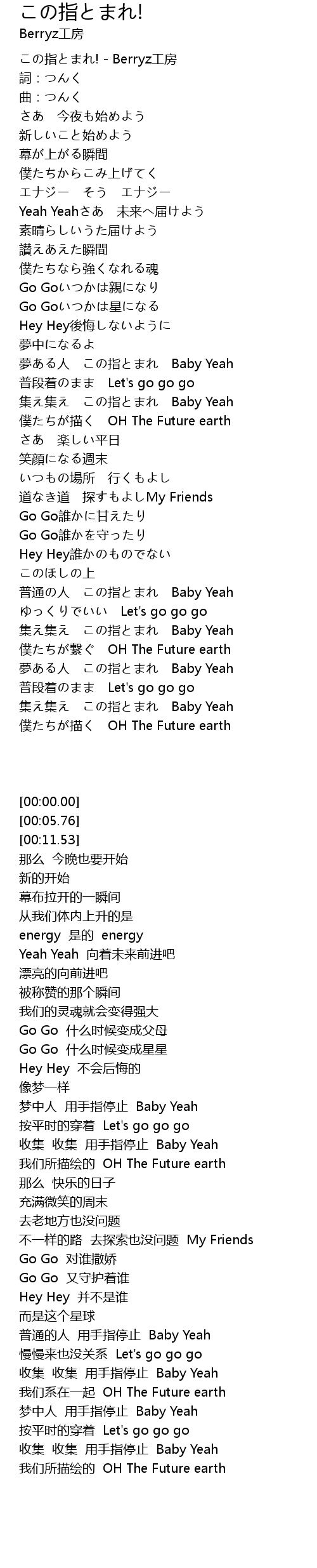 | [00:00.00] | zhǐ! Berryz gōng fáng |